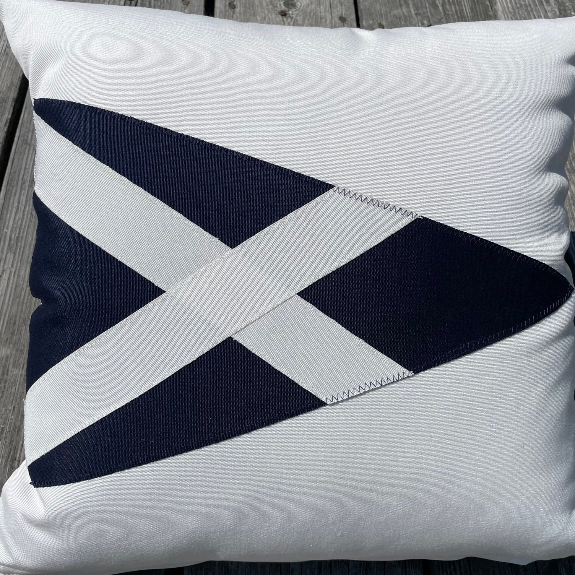 Made in Maine, this natural white pillow is constructed with premium quality Sunbrella® fabric that is fade, stain, and weather resistant. The design is appliquéd with a nautical zig-zag stitch for durability and design aesthetic. Add a touch of nautical style to your deck, patio, or boat with our luxuriously comfortable pillows.