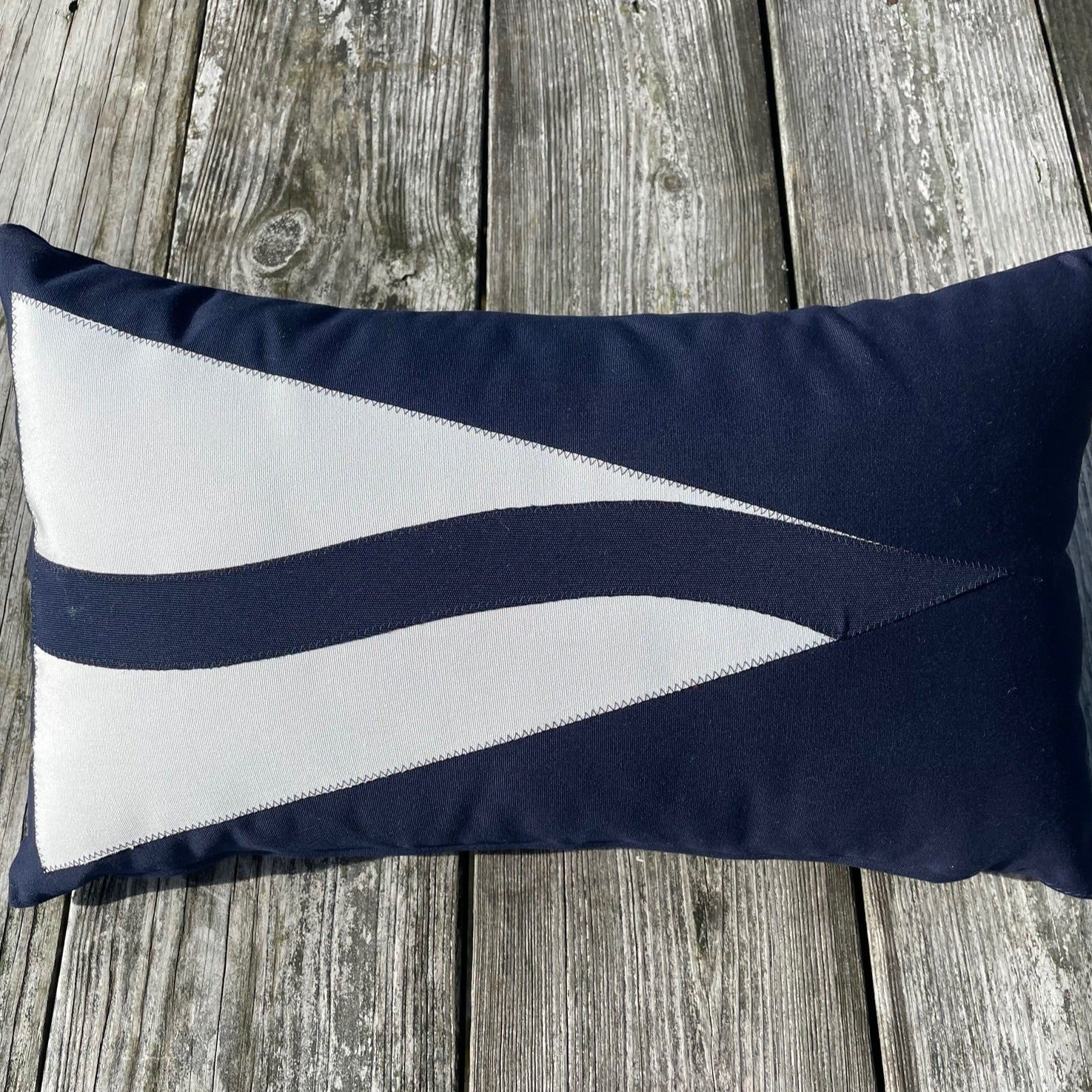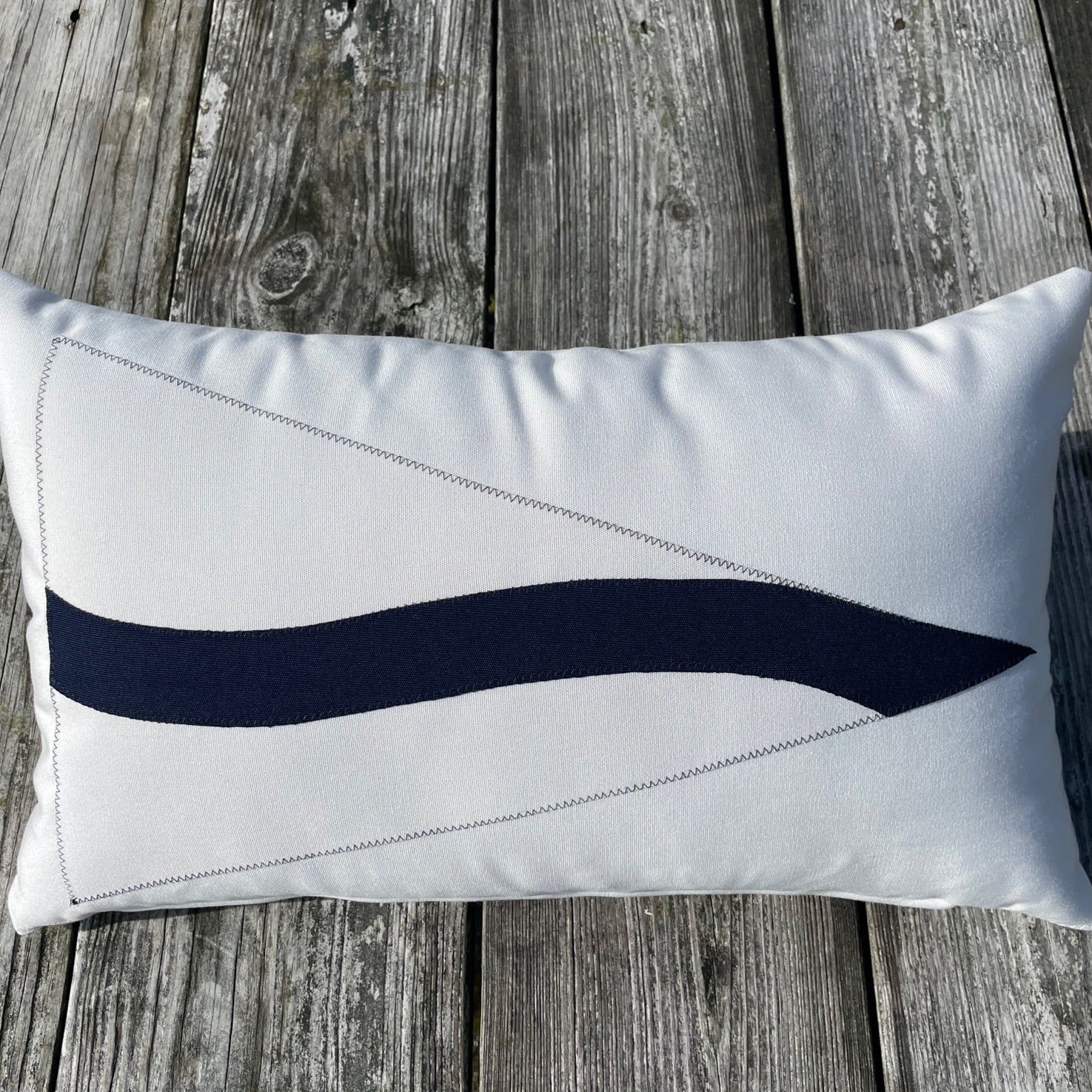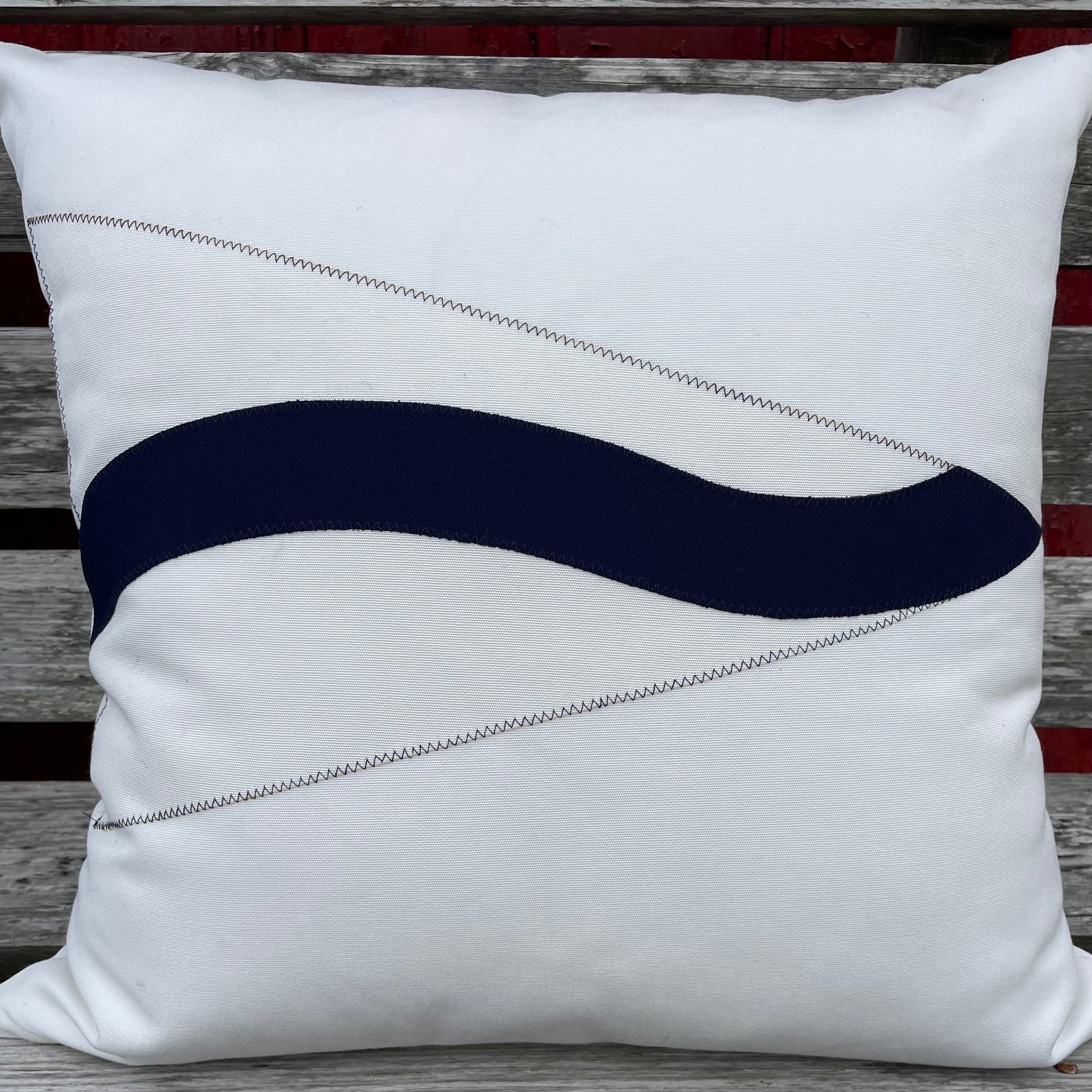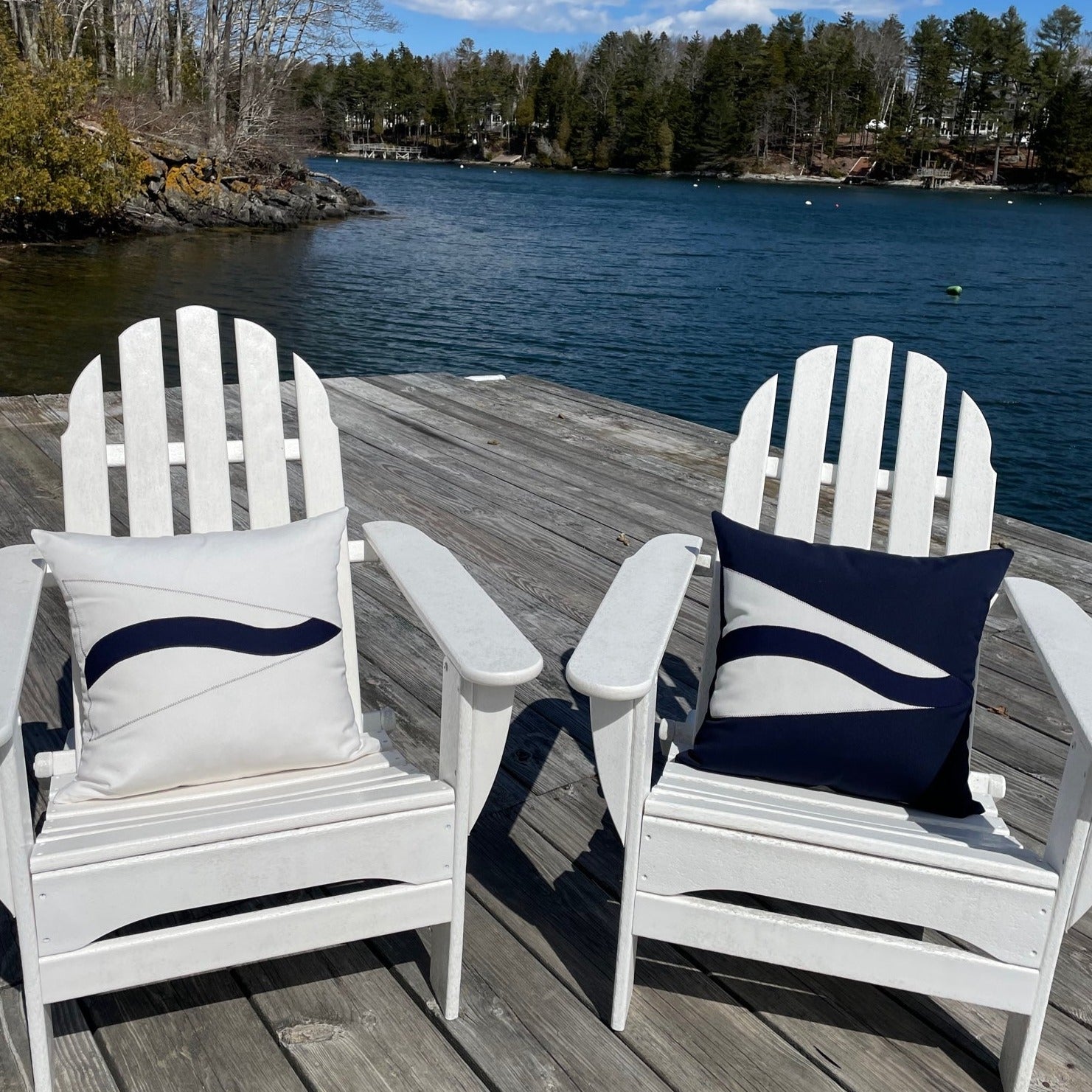Made in Maine, this pillow available both colors natural white and nautical navy is constructed with premium quality Sunbrella® fabric that is fade, stain, and weather resistant. The design is appliquéd with a nautical zig-zag stitch for durability and design aesthetic. Add a touch of nautical style to your deck, patio, or boat with our luxuriously comfortable pillows.