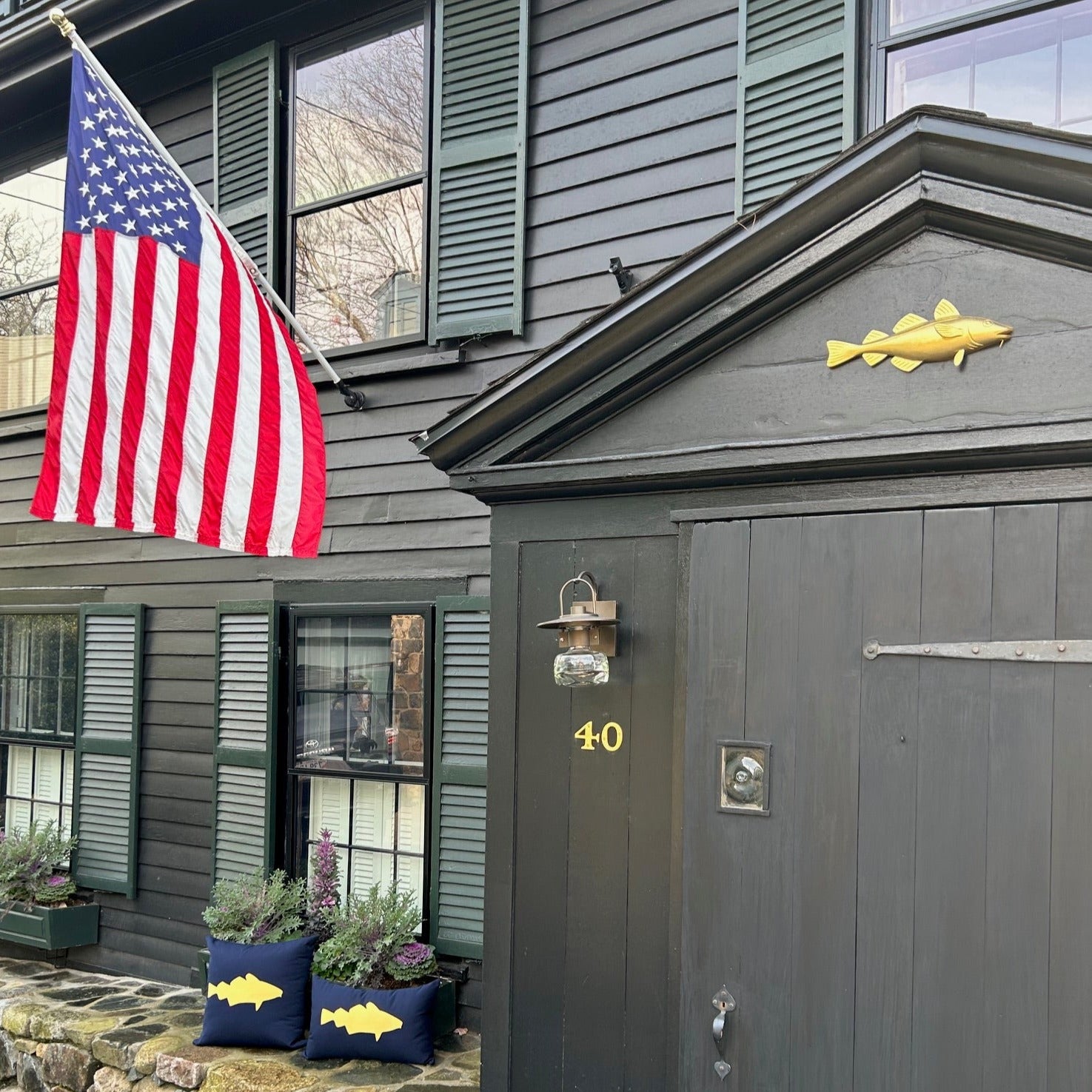 The golden cod, a symbol dating back to the 18th century for prosperity and heritage to our New England fisherman. Now it adorns many New England doorways as a welcoming sign to guests.