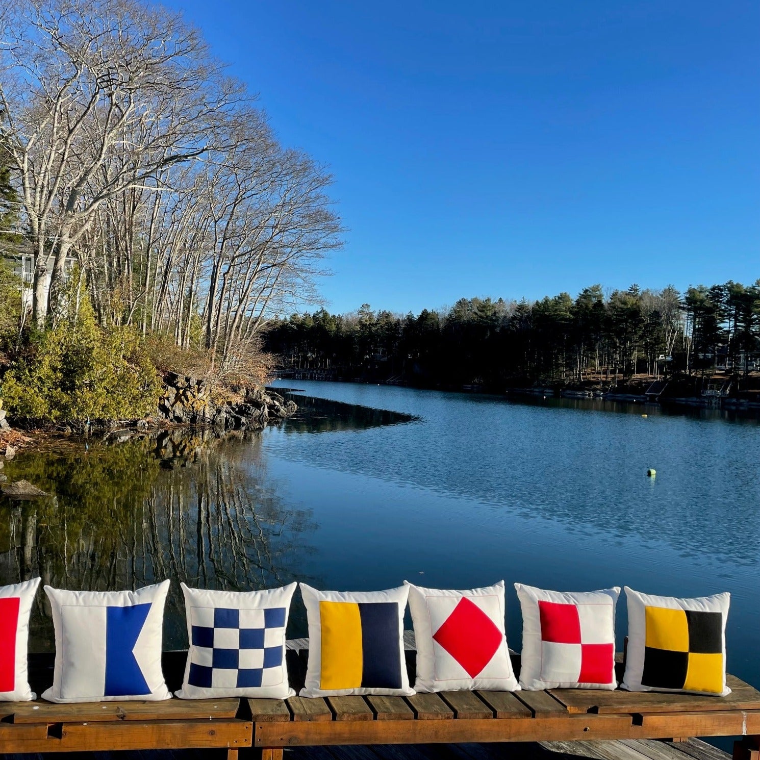 Code flags originated in the 1800's are used as an internationally understood system that includes 26 flags each depicting a letter of the alphabet. The primary colors of red, blue, yellow, black and white are used due to their vibrancy and ability to be distinguished at sea. Hoist your signal!