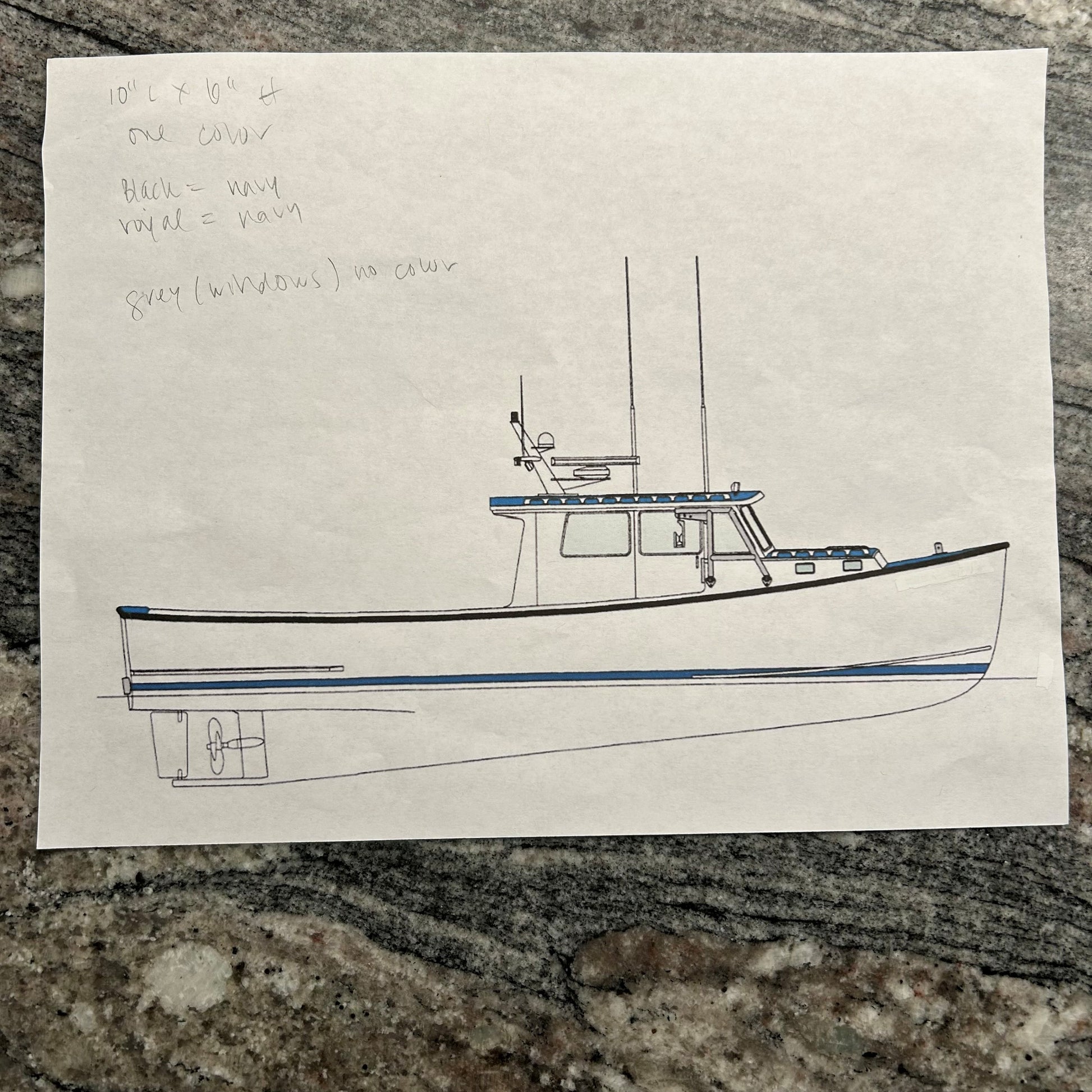 Be a designer, create your own custom pillow of your own boat. A perfect gift for the captain that has everything! Provide a line drawing of the boat, choose pillow color and thread. We're happy to help you. Please contact us ann@harpswelldesigns.com