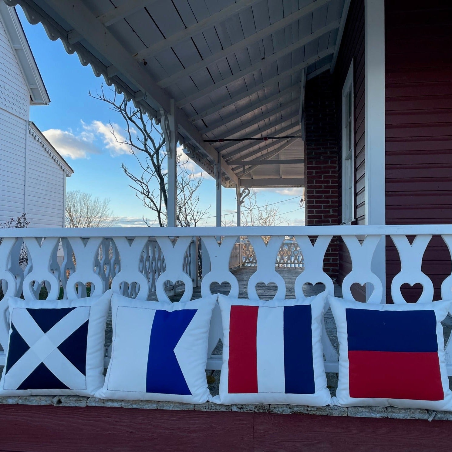 Code flags originated in the 1800's are used as an internationally understood system that includes 26 flags each depicting a letter of the alphabet. The primary colors of red, blue, yellow, black and white are used due to their vibrancy and ability to be distinguished at sea. Hoist your signal!