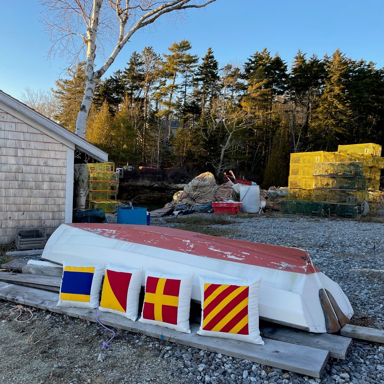 Code flags originated in the 1800's are used as an internationally understood system that includes 26 flags each depicting a letter of the alphabet. The primary colors of red, blue, yellow, black and white are used due to their vibrancy and ability to be distinguished at sea. Hoist your signal!