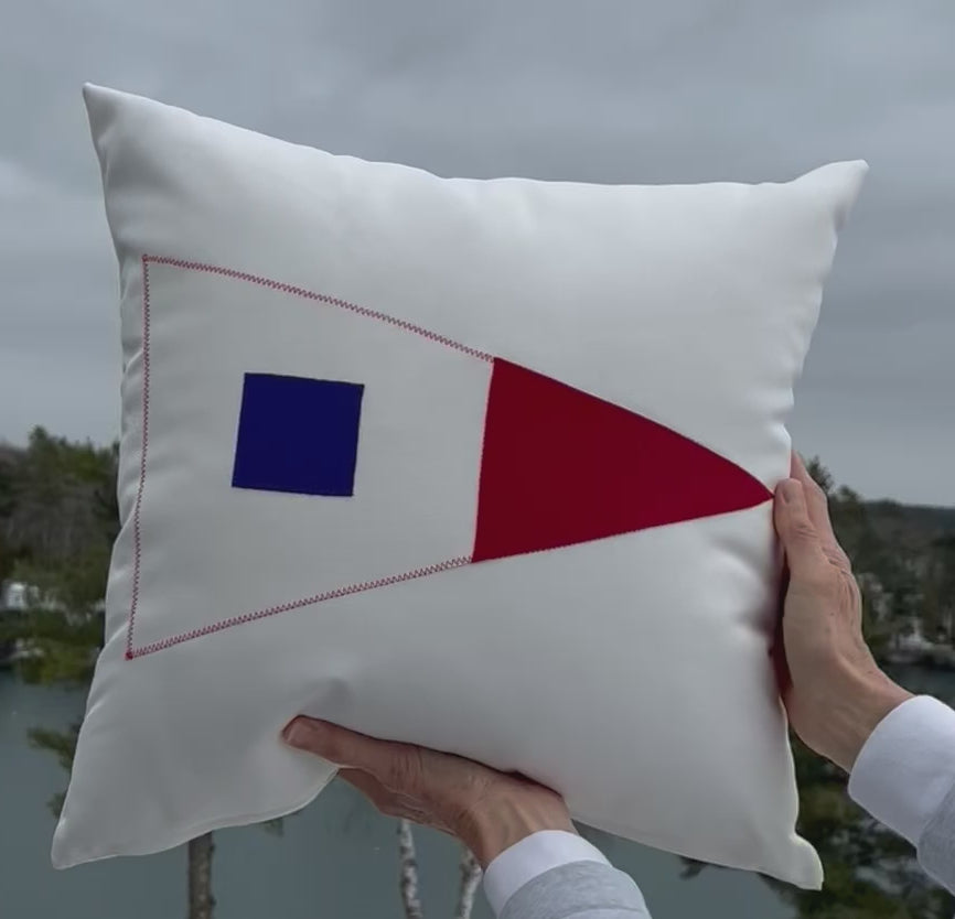 Made in Maine, this natural white pillow is constructed with premium quality Sunbrella® fabric that is fade, stain, and weather resistant. The design is appliquéd with a nautical zig-zag stitch for durability and design aesthetic. Add a touch of nautical style to your deck, patio, or boat with our luxuriously comfortable pillows.