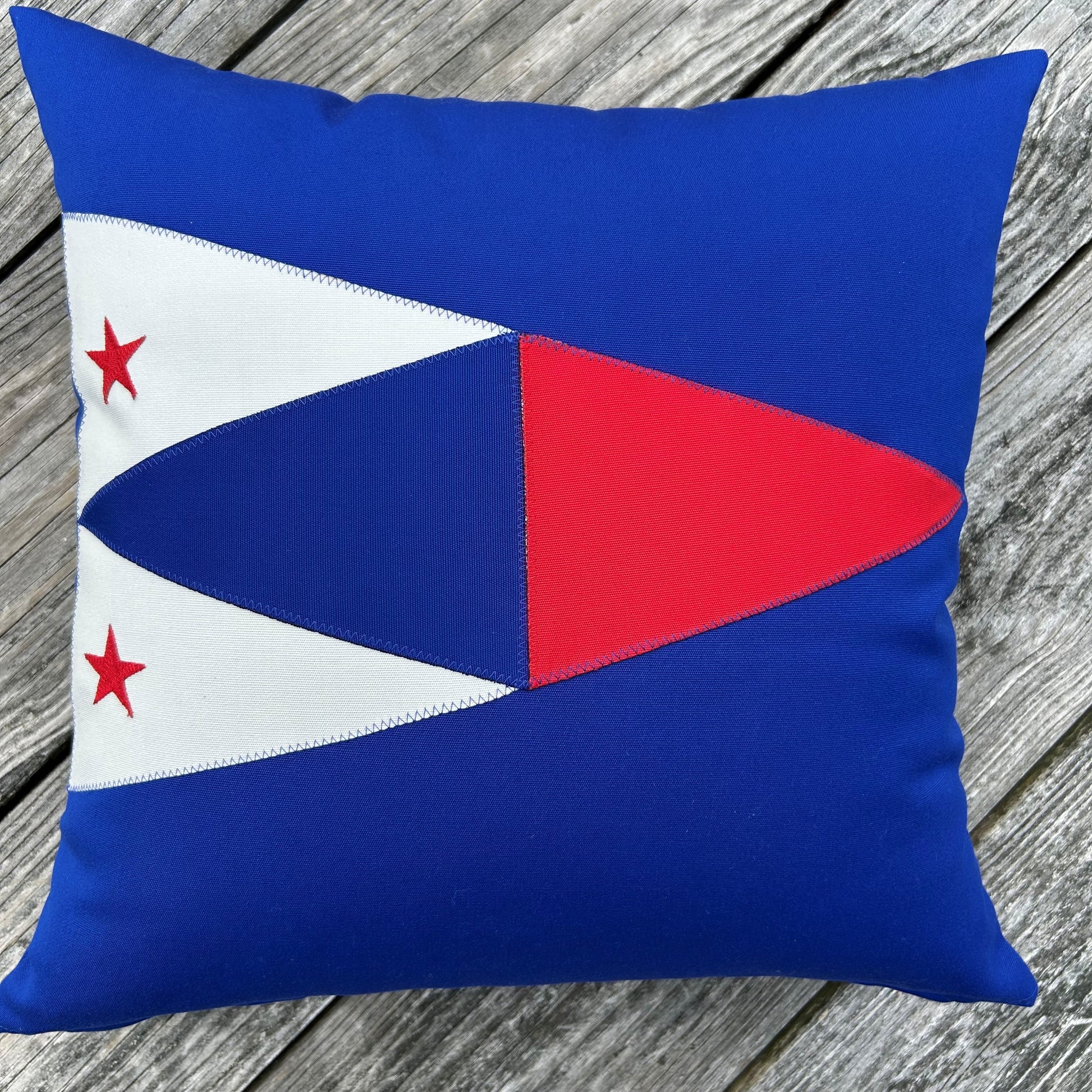 Made in Maine, this natural white pillow is constructed with premium quality Sunbrella® fabric that is fade, stain, and weather resistant. The design is appliquéd with a nautical zig-zag stitch for durability and design aesthetic. Add a touch of nautical style to your deck, patio, or boat with our luxuriously comfortable pillows.